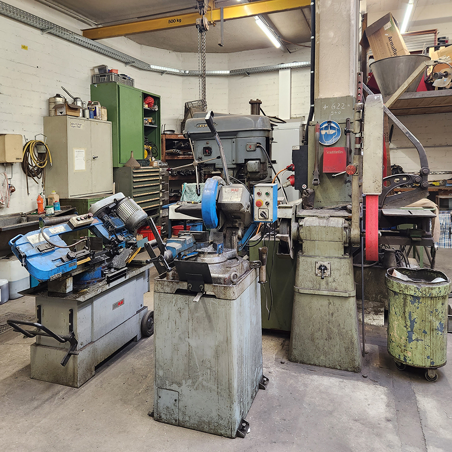 Schmiedeofen | Schweissanlage | Stanzmaschine | Blechschere | Abkantmaschine| Metallsägen | Drehbank | Bohranlage | Schleifmaschinen | diverse Handmaschinen